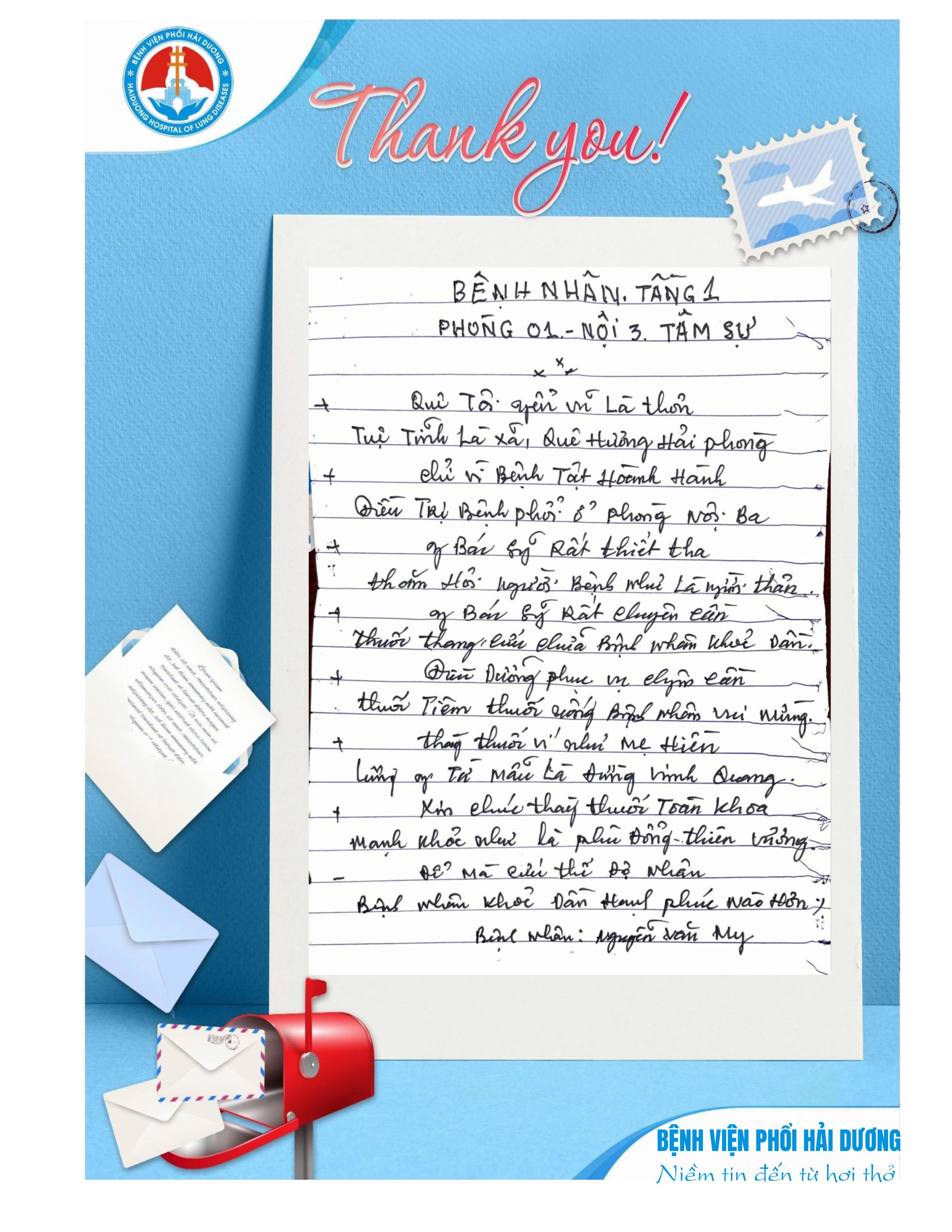 THƯ CẢM ƠN TỪ NGƯỜI BỆNH – NGUỒN ĐỘNG LỰC CHO BỆNH VIỆN PHỔI HẢI DƯƠNG
