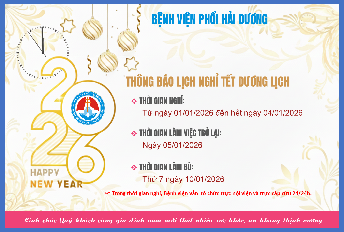 Nhằm phục vụ nhu cầu khám, chữa bệnh của người bệnh, Bệnh viện Phổi Hải Dương trân trọng thông báo lịch nghỉ Tết Dương lịch 2026: