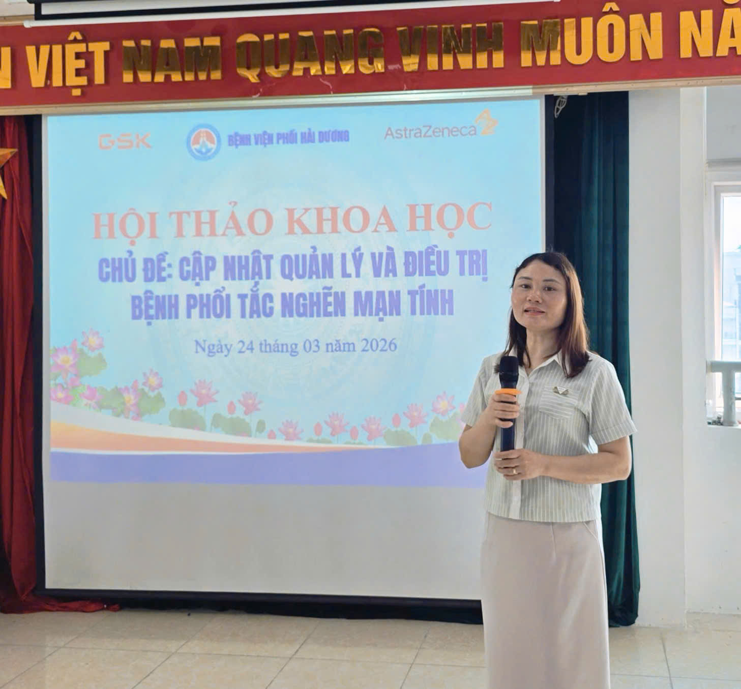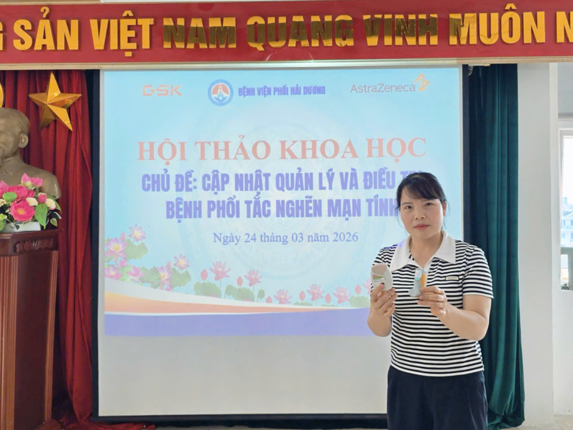 Đặc biệt, hội thảo có sự đồng hành và tài trợ từ hai công ty dược phẩm uy tín là GSK và AstraZeneca. Sự hỗ trợ này không chỉ góp phần vào thành công chung của chương trình mà còn thể hiện sự hợp tác chặt chẽ giữa bệnh viện và các đối tác trong việc nâng cao chất lượng chăm sóc sức khỏe cộng đồng.