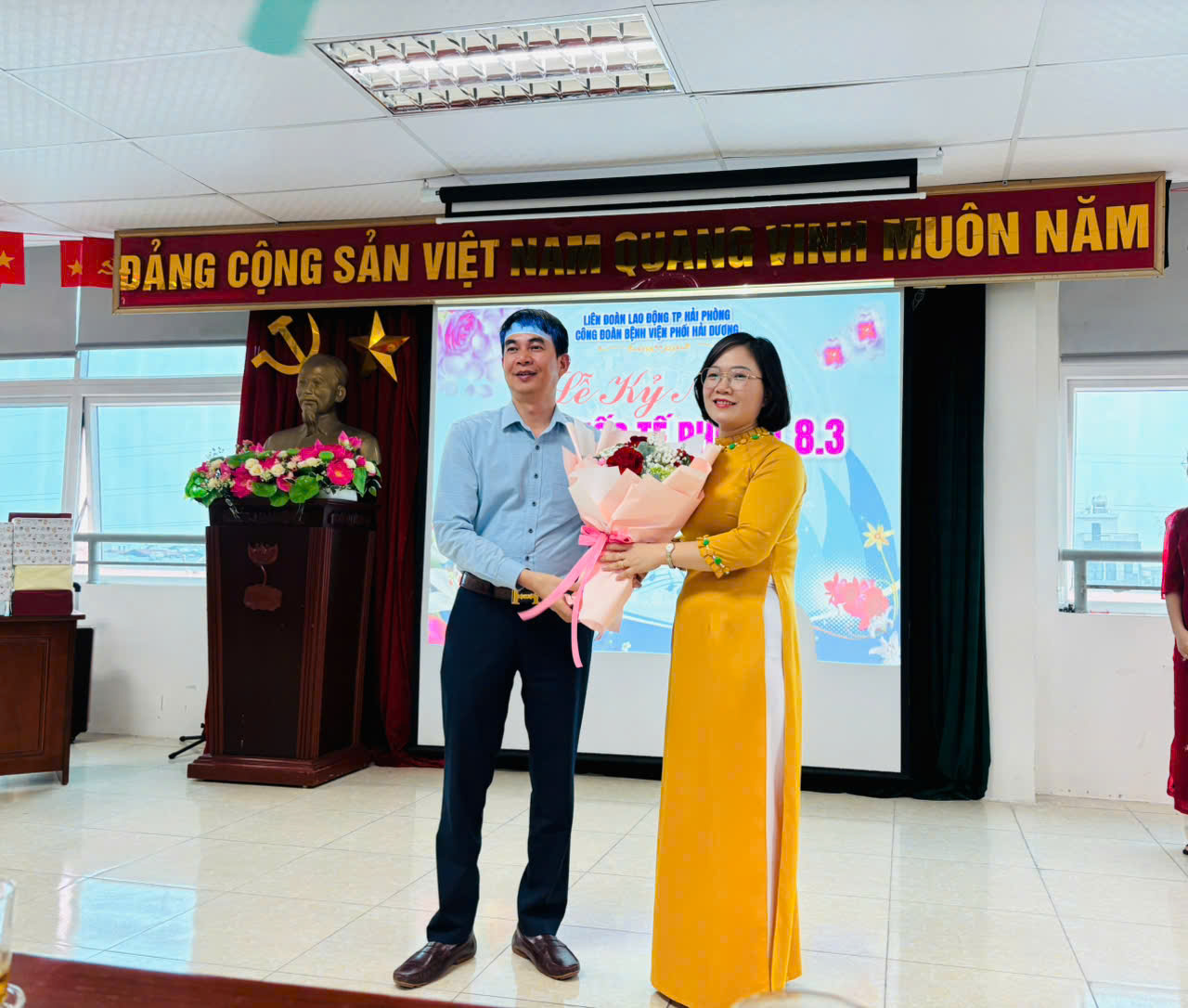 Tại chương trình, Ban Giám đốc Bệnh viện cùng Ban Chấp hành Công đoàn và Đoàn Thanh niên đã tặng hoa chúc mừng nữ cán bộ, viên chức, người lao động.
