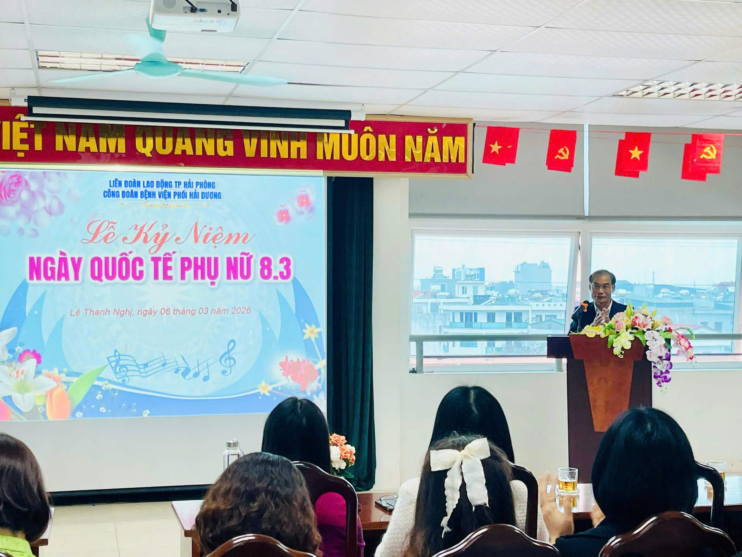 Nhân dịp kỷ niệm 116 năm Ngày Quốc tế Phụ nữ (08/3/1910 – 08/3/2026), chiều ngày 06/3/2026, Công đoàn Bệnh viện Phổi Hải Dương đã tổ chức Lễ kỷ niệm Ngày Quốc tế Phụ nữ 8/3 nhằm tôn vinh vai trò và những đóng góp của nữ cán bộ, viên chức, người lao động trong toàn bệnh viện.