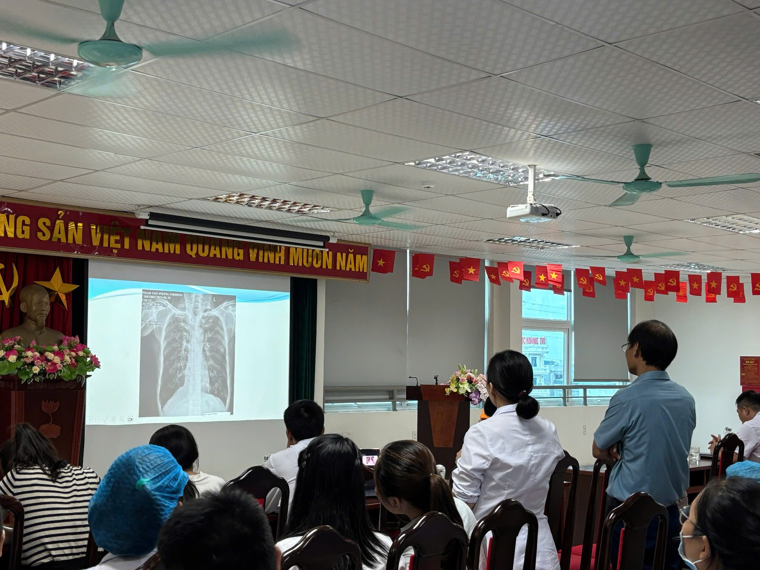 Trong chương trình, Ts.Bs Nguyễn Văn Lưu đã trình bày những kiến thức cơ bản về giải phẫu Xquang lồng ngực, các dấu hiệu điển hình trên phim Xquang phổi, đồng thời phân tích nhiều hình ảnh minh họa thực tế lâm sàng. Bên cạnh đó, các học viên còn được trao đổi, thảo luận và giải đáp thắc mắc trực tiếp, giúp củng cố kiến thức và áp dụng hiệu quả vào công tác khám, chữa bệnh.