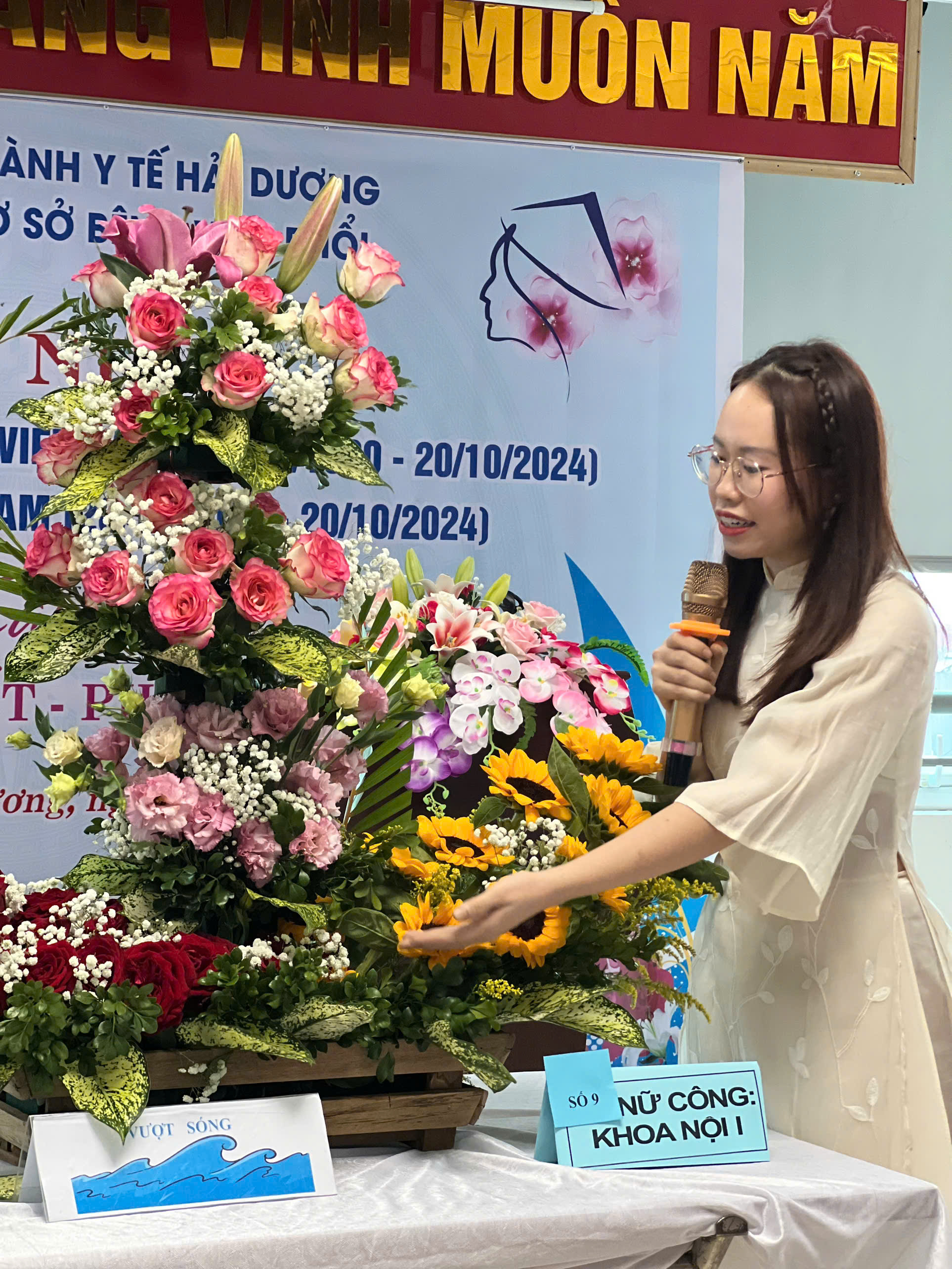 Cũng nhân dịp này, Công đoàn, Ban nữ công bệnh viện tổ chức Hội thi cắm hoa với chủ đề “Đoàn kết - Phát triển”. 12 tổ nữ công tham gia đã mang đến 12 tác phẩm đẹp về hình thức, ý nghĩa về nội dung. Kết thúc hội thi Ban tổ chức đã trao giải cho các tác phẩm đạt kết quả xuất sắc, trong đó giải nhất thuộc về tổ nữ công phòng Tài chính kế toán.