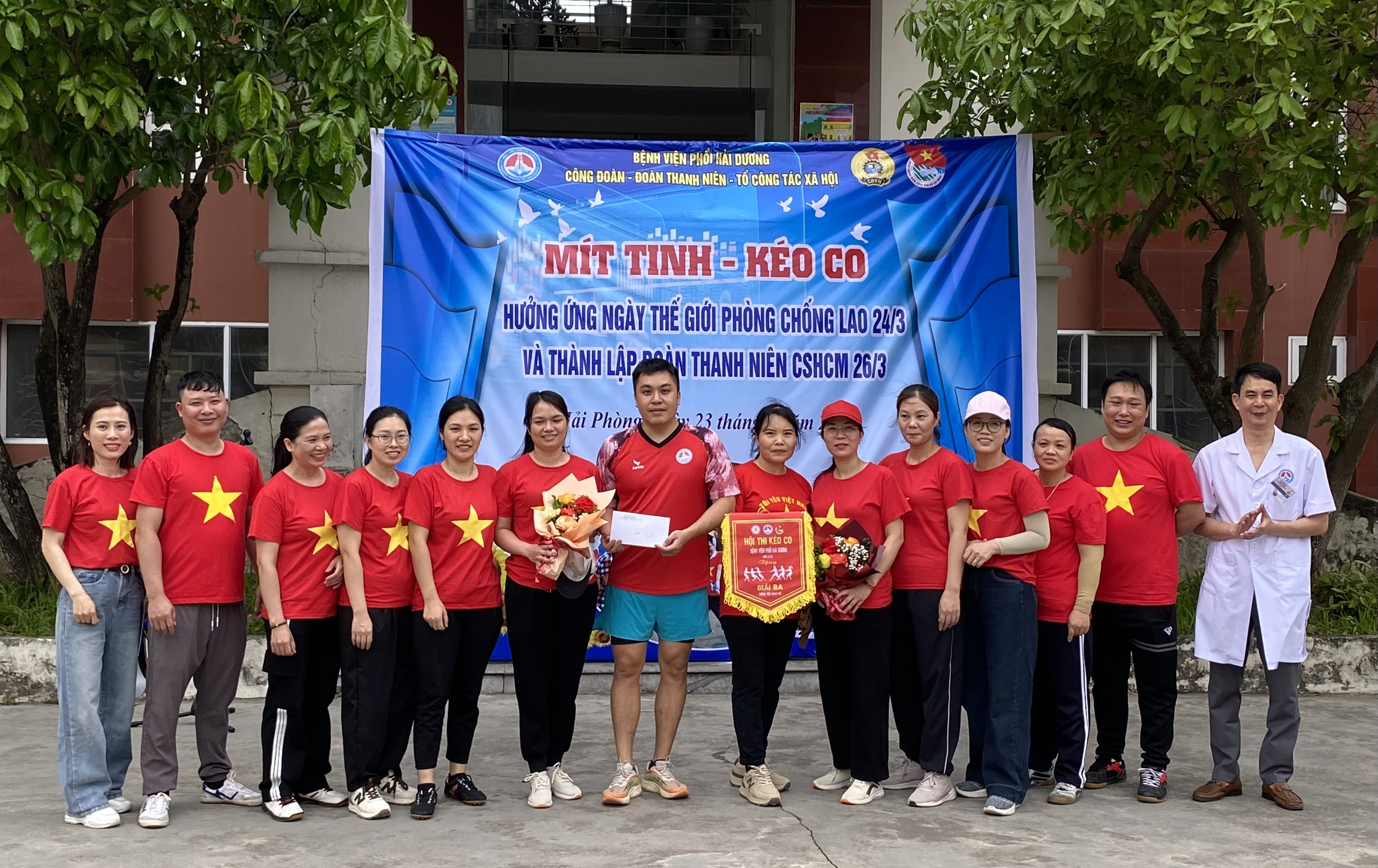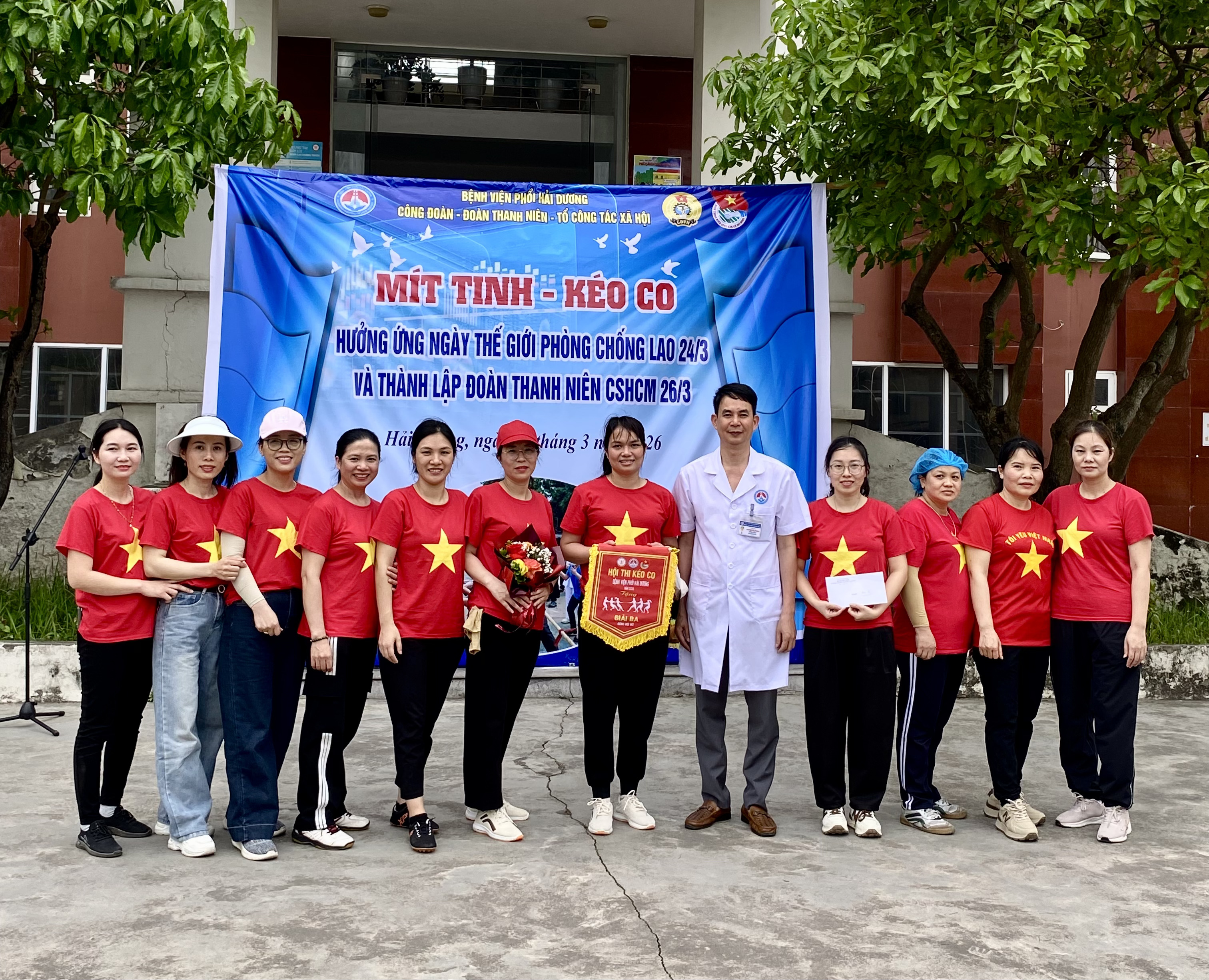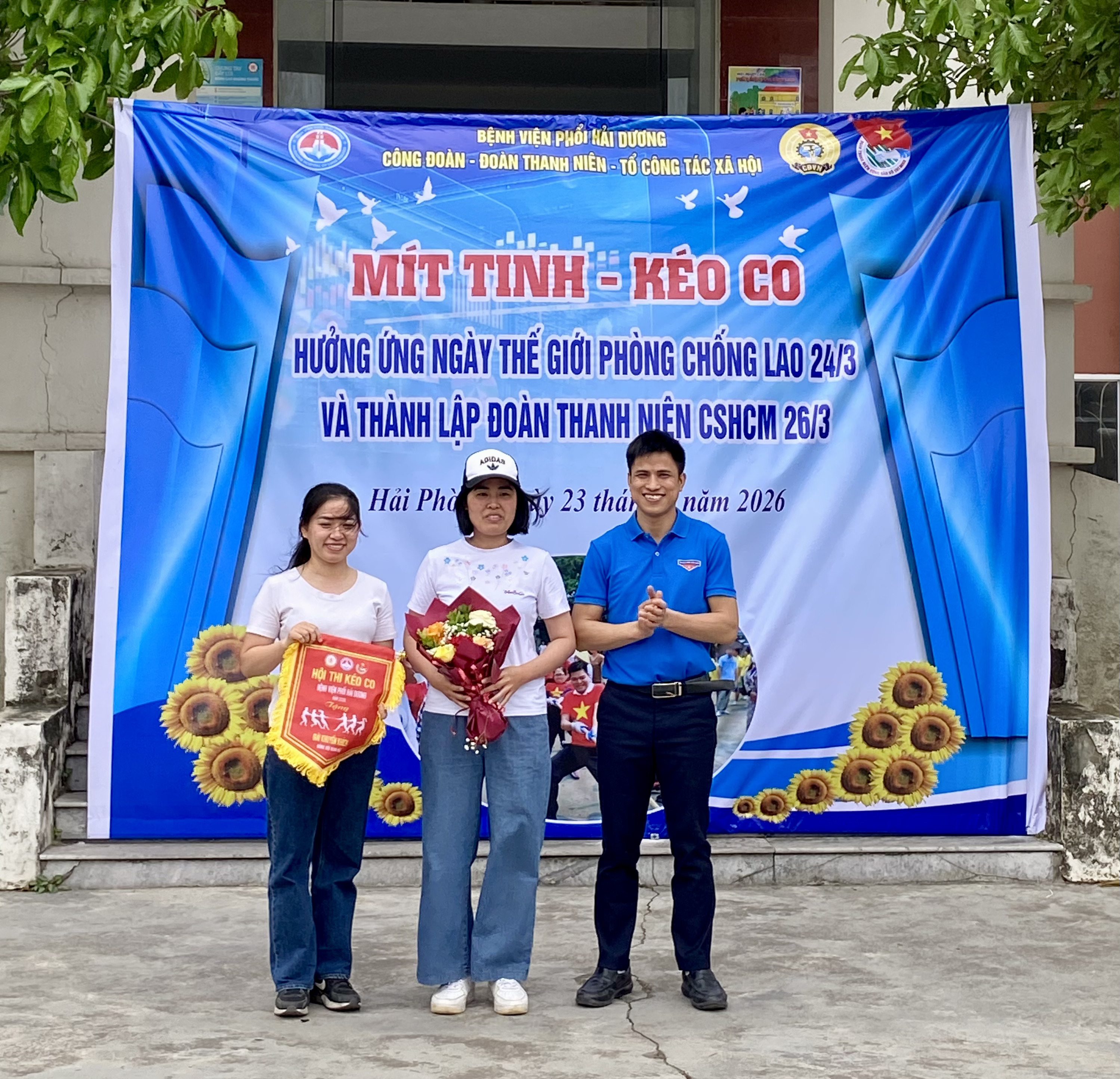 Song song với các hoạt động chuyên môn, Đoàn Thanh niên Bệnh viện Phổi Hải Dương đã tổ chức hoạt động kéo co, thu hút đông đảo đoàn viên, thanh niên tham gia. Hoạt động góp phần phát huy vai trò xung kích, tình nguyện của tuổi trẻ trong tuyên truyền, nâng cao nhận thức và tham gia công tác phòng, chống lao; đồng thời tạo không khí sôi nổi, tăng cường sự gắn kết và lan tỏa thông điệp đoàn kết, chung tay của toàn xã hội trong phòng, chống bệnh lao, phù hợp với tinh thần ‘Quốc gia dẫn dắt – Người dân đồng hành’ của Ngày Thế giới phòng chống lao năm 2026.”
