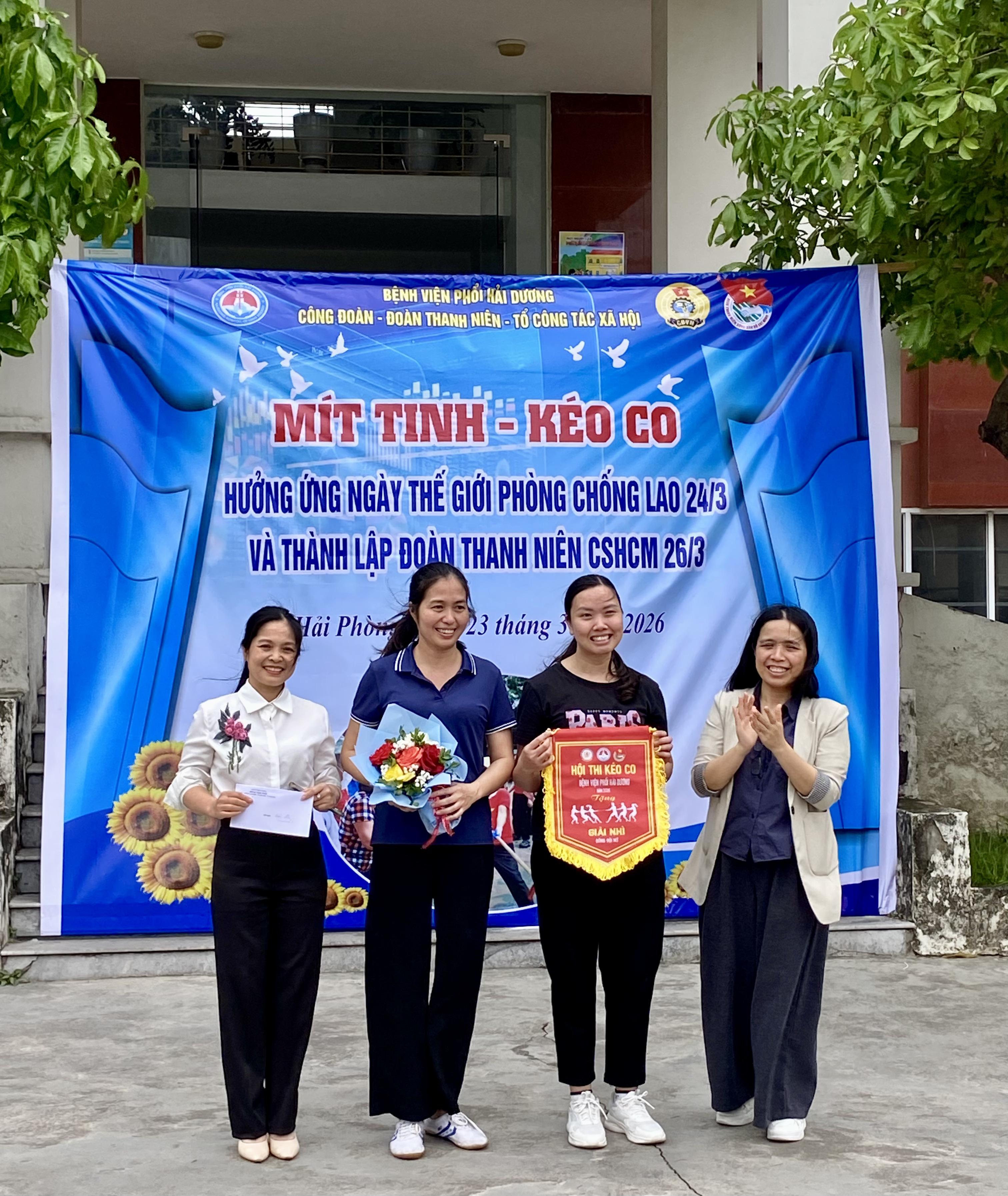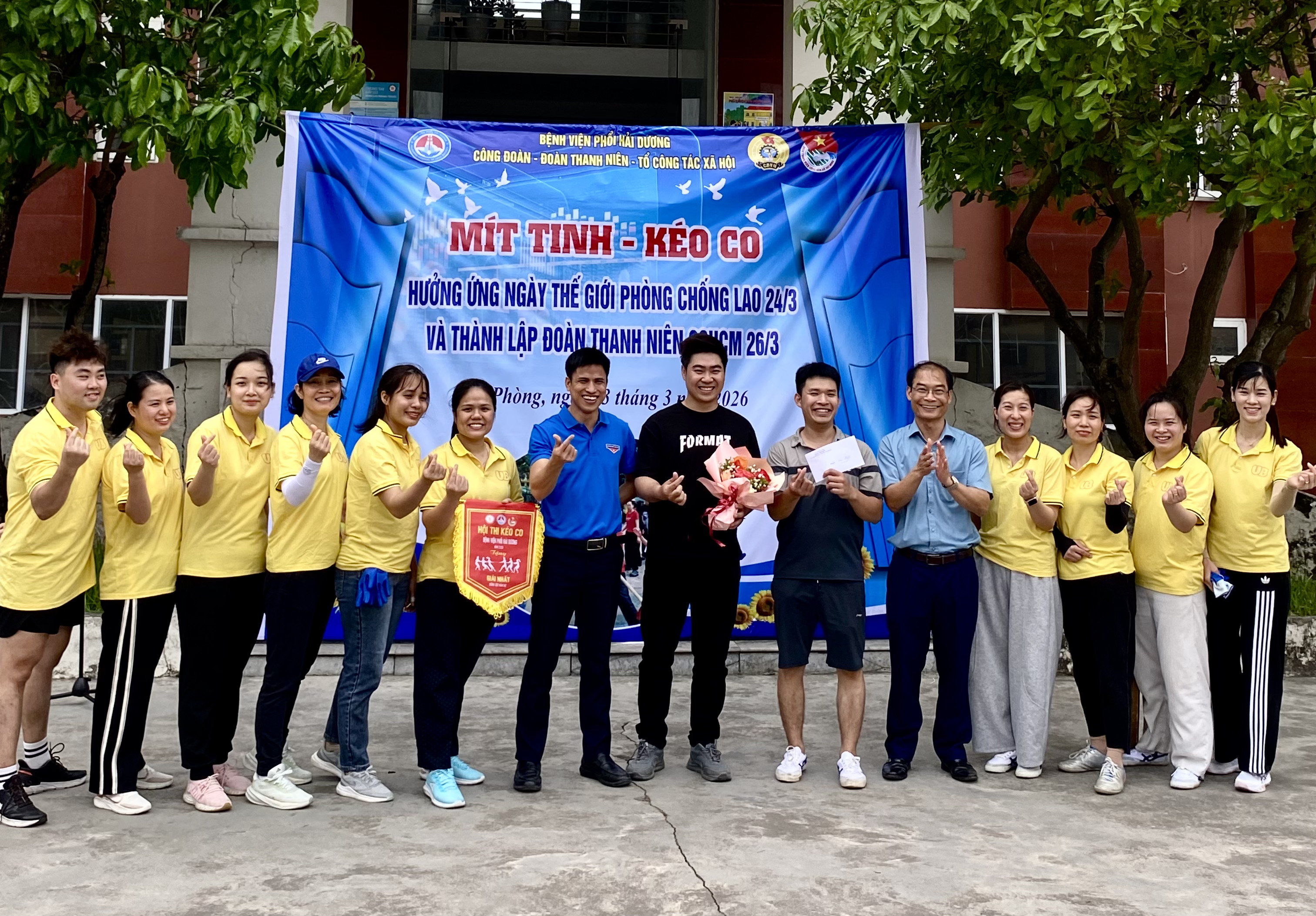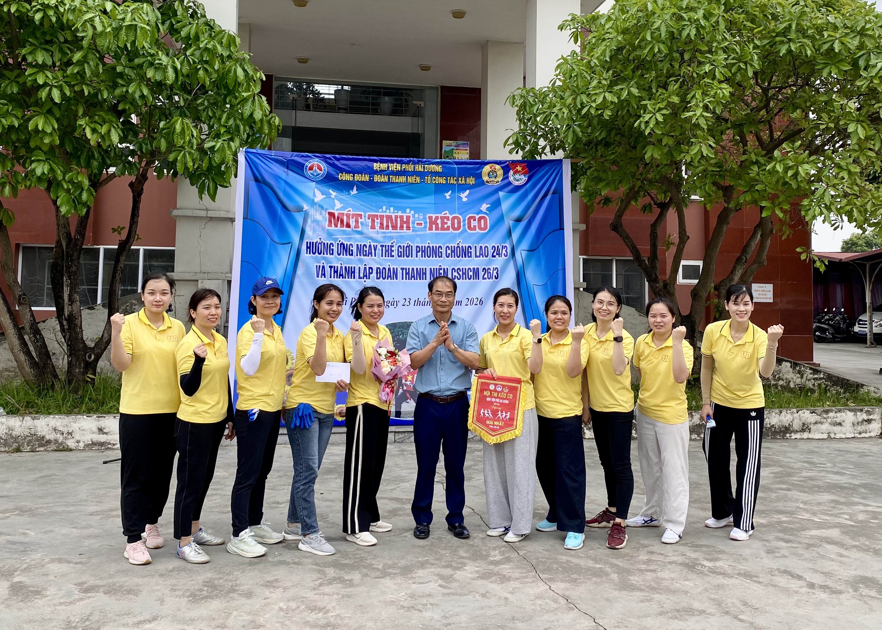 Song song với các hoạt động chuyên môn, Đoàn Thanh niên Bệnh viện Phổi Hải Dương đã tổ chức hoạt động kéo co, thu hút đông đảo đoàn viên, thanh niên tham gia. Hoạt động góp phần phát huy vai trò xung kích, tình nguyện của tuổi trẻ trong tuyên truyền, nâng cao nhận thức và tham gia công tác phòng, chống lao; đồng thời tạo không khí sôi nổi, tăng cường sự gắn kết và lan tỏa thông điệp đoàn kết, chung tay của toàn xã hội trong phòng, chống bệnh lao, phù hợp với tinh thần ‘Quốc gia dẫn dắt – Người dân đồng hành’ của Ngày Thế giới phòng chống lao năm 2026.”