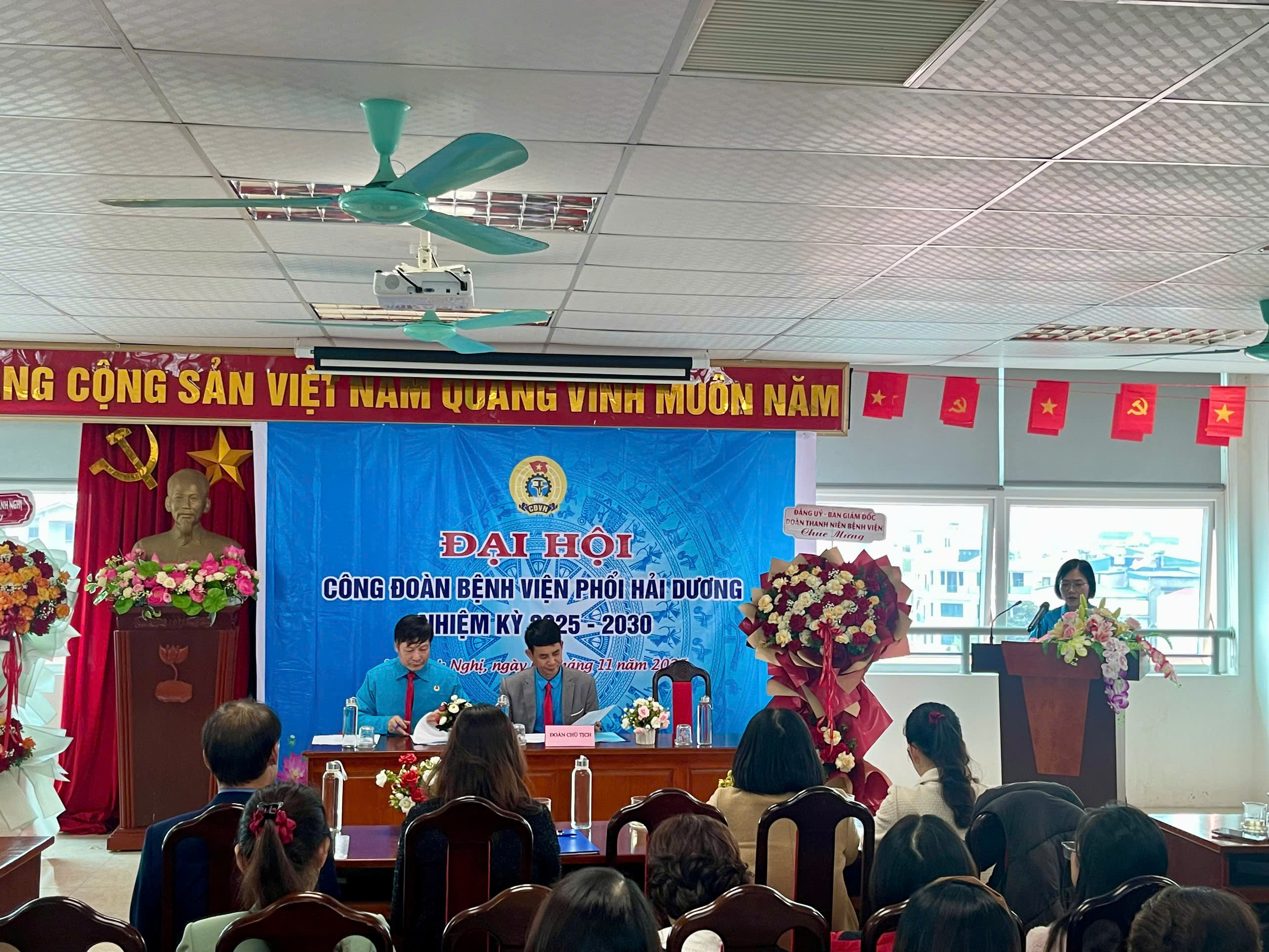 Chiều ngày 06/11/2025, Bệnh viện Phổi Hải Dương long trọng tổ chức Đại hội Công đoàn cơ sở nhiệm kỳ mới, nhằm tổng kết, đánh giá kết quả hoạt động công đoàn trong nhiệm kỳ vừa qua và đề ra phương hướng, nhiệm vụ trong giai đoạn tới.