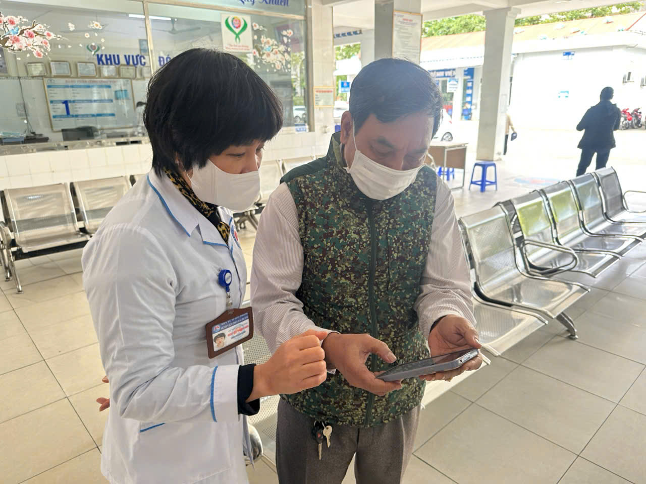 Tại buổi làm việc, bệnh viện đã báo cáo tiến độ cập nhật và đồng bộ dữ liệu Sổ sức khỏe điện tử, số lượng người bệnh được hỗ trợ cài đặt và kích hoạt tài khoản trên ứng dụng VNeID, cũng như quy trình hướng dẫn người dân tại các vị trí tiếp đón. Bên cạnh đó, bệnh viện cũng nêu rõ những khó khăn còn tồn tại trong quá trình triển khai. Đoàn công tác đã đi kiểm tra thực tế tại các khoa, phòng, đánh giá mức độ chấp hành của nhân viên y tế và việc hướng dẫn người bệnh cài đặt Sổ sức khỏe điện tử.
